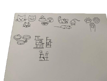 For the sketching phase, we had to create at least three variations for each icon. At first, I wasn’t sure what theme to pick, so I looked online for inspiration and tried out a bunch of ideas. Because I love cats, I finally decided to go with a cat theme. I sketched different cat faces, cat towers, paws, toys, and other cat-related ideas until I found a direction that felt fun and consistent.